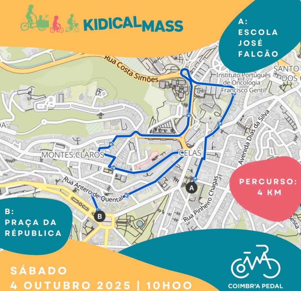 Venham daí preparar-se para participar na Kidical Mass, a manifestação sobre rodas que acontece em Coimbra e outras cidades do mundo. Vem pedalar por ruas e estradas mais convidativas para quem quer usar bicicleta!